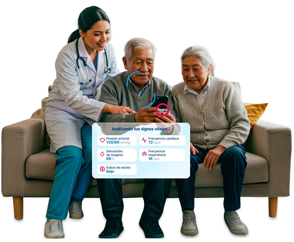 Atención para adultos mayores, desde los 65 años tienes consultas, emergencias y Selfie Salud que te mide tus signos vitales con IA para cuidar tu salud en segundos.